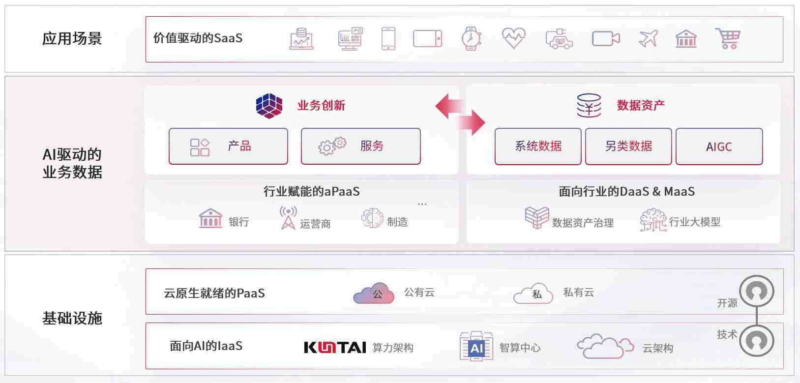 数字时代,,围绕企业数字化转型的关键要素,,,赏金国际数码开创性的提出数云融合战略和技术体系框架,,,着力在云原生、、、、数字原生、、、、AI原生和信创产业上架构产品和服务能力,,为处在不同数字化转型阶段的快消零售、、汽车、、、金融、、、医疗、、政企、、、、教育、、、运营商等行业客户提供泛在的敏捷IT能力和融合的数据驱动能力,,,构建跨界融合创新的数字业务场景和新业务模式,,助力企业级客户建立面向未来的核心能力和竞争优势,,全面推动社会的数字化、、、智能化转型升级。。。